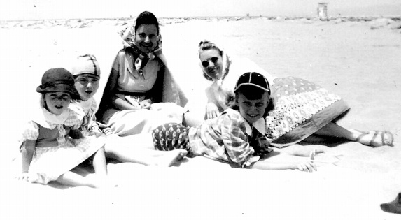 Rachel, Lillie and Children - Playa Del Rey Beach LA 1950 |