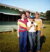 Dennis, Shelly and Steve at Geddie Cabin - Reunion 1970s |